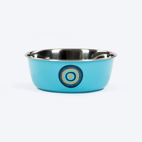 HUFT Evil Eye Printed Steel Bowl For Dog - Blue