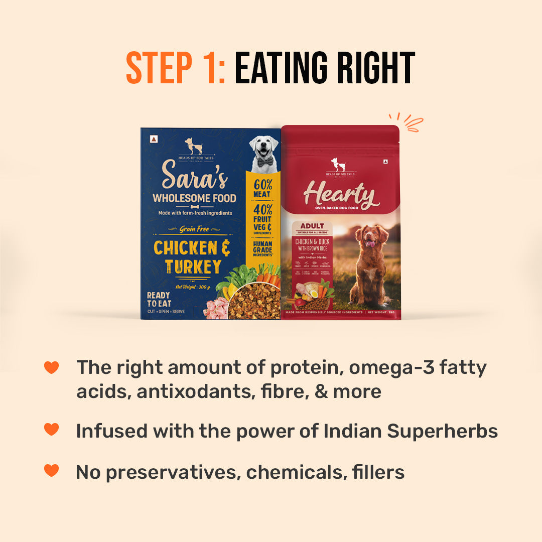 - Hearty Chicken & Duck Oven-Baked Food (2 kg): High-Protein dry food made with 60% meat and Indian herbs for sustained energy.