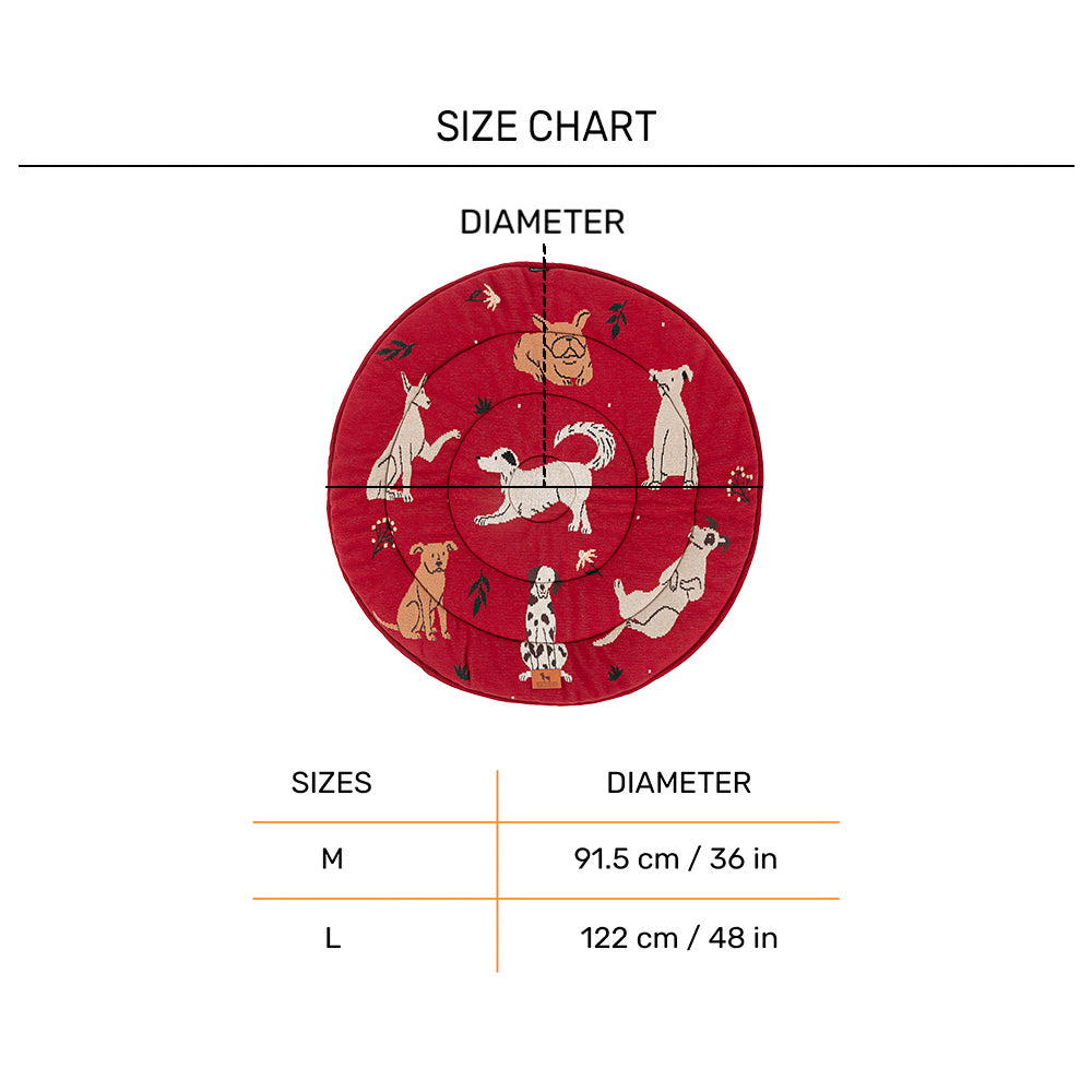 Give your dog a cosy corner of their own with the HUFT Bloom Buddies Round Mat in a playful red colour. Made with 100% cotton fabric on top, this soft quilted mat features adorable dog and floral prints that bring a touch of personality to every space. Its soft cushioning provides a plush surface for relaxing naps or gentle play, while the anti-skid bottom keeps the mat securely in place. Lightweight and versatile, it's perfect for living rooms, balconies or anywhere your pet loves to curl up. Its machine-washable design ensures you can easily keep it clean and fresh, no matter how many muddy paws come its way.