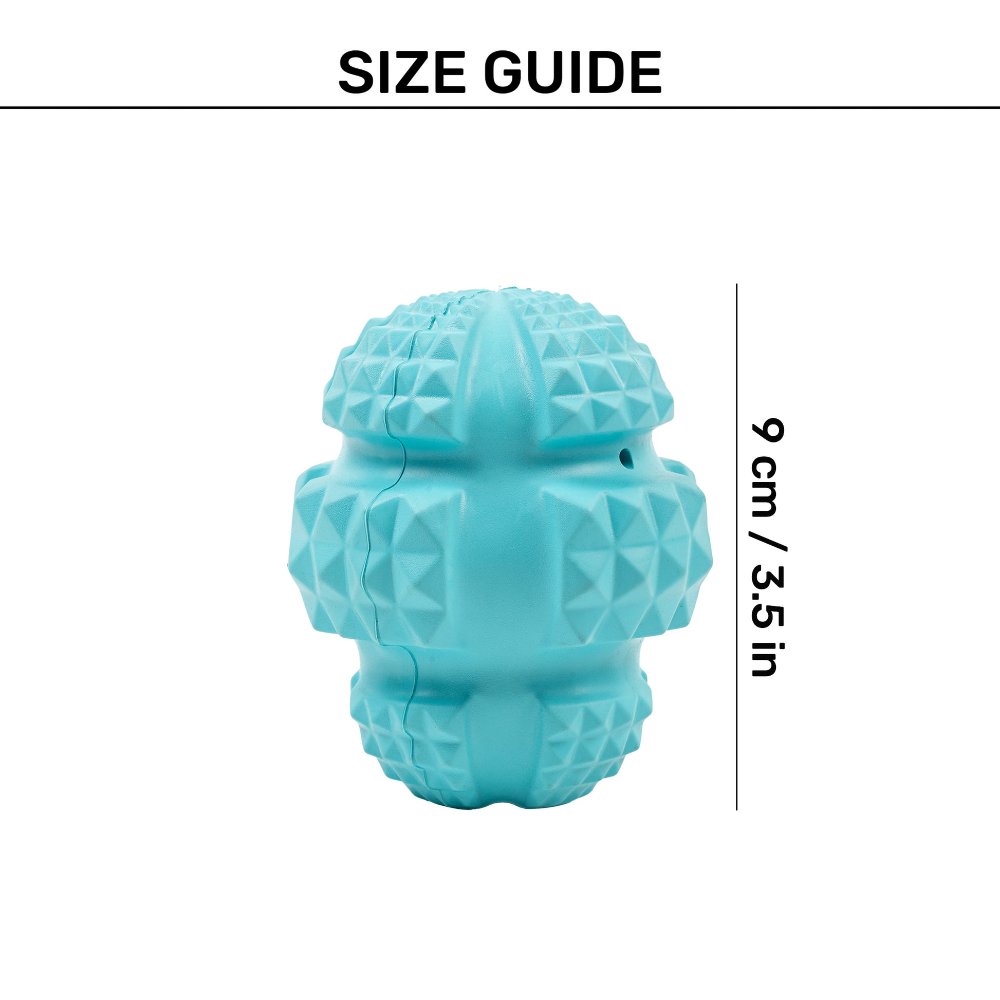 This playful chew toy is shaped like a balloon ball, making it fun for dogs to grab, carry and chase. The textured surface has ridges and grooves that feel good on the gums and support light dental cleaning during chew time. It’s great for quick games of fetch, everyday chewing and keeping energetic dogs happily engaged. Lightweight and easy to hold, it’s a simple, fun pick for dogs who love active play. And the cherry on the top is we can also add small treats in the whole for exciting fun for the dog.