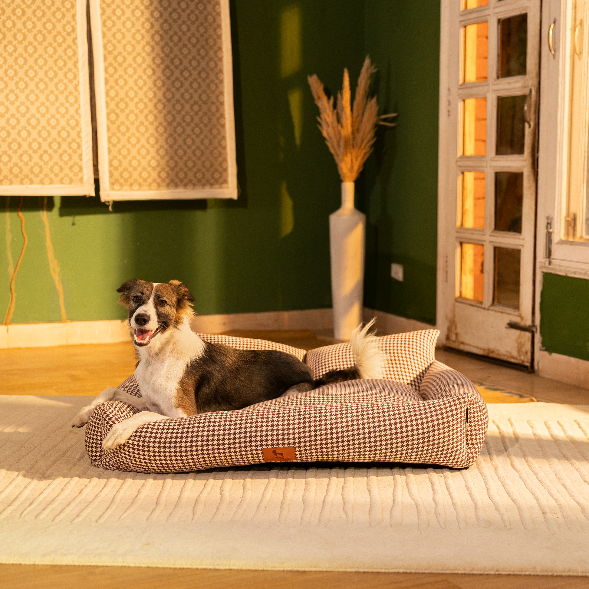 HUFT Cookie Houndstooth Lounger Bed For Dog - Brown