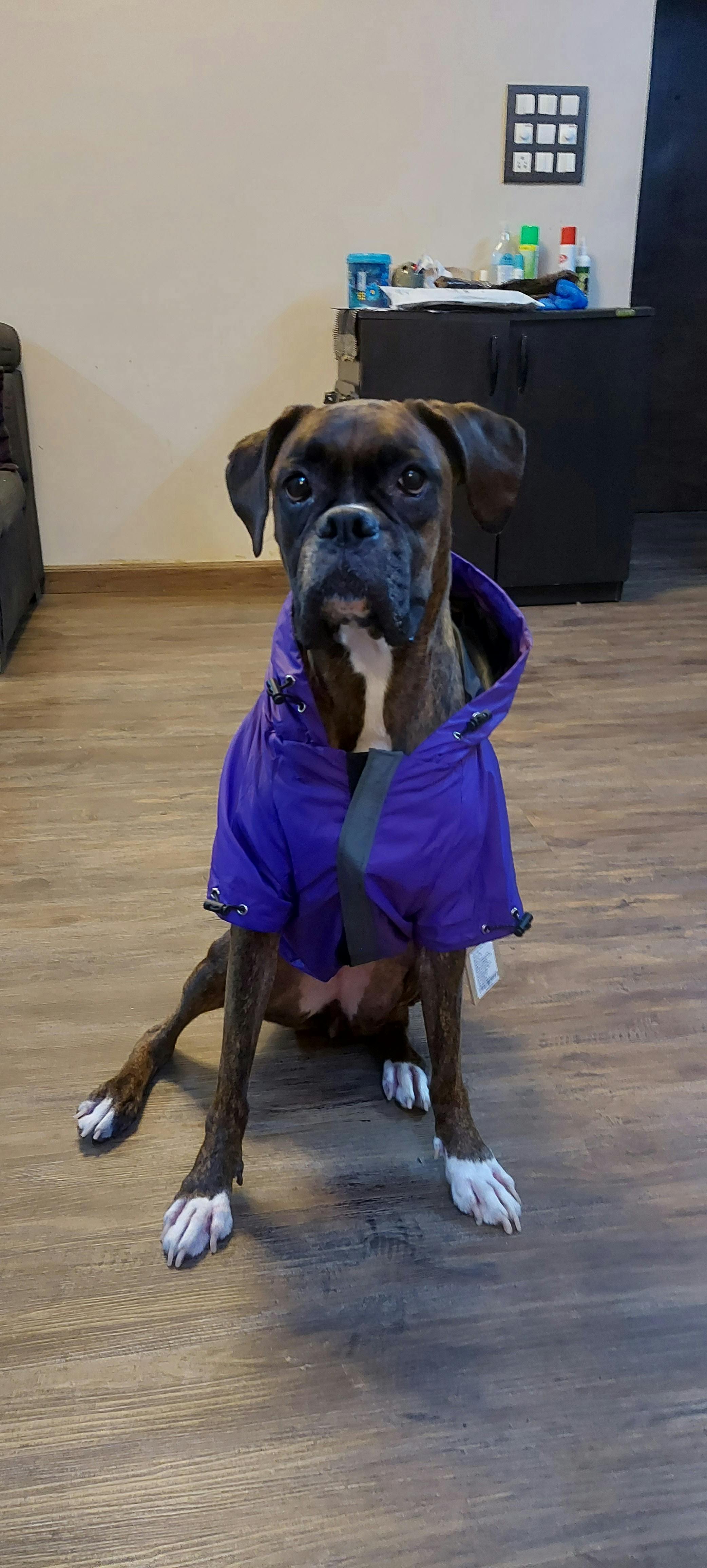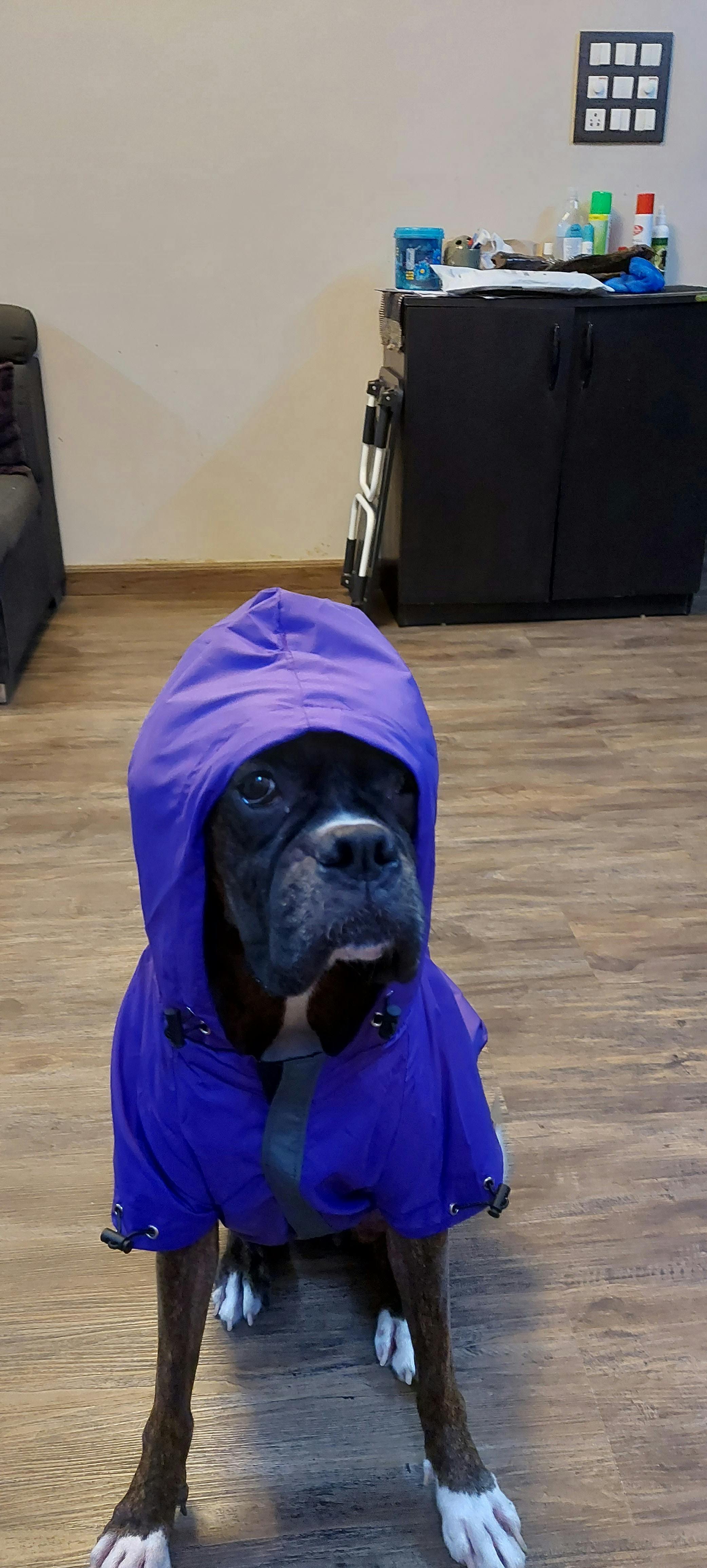 My dog loves the raincoat! So easy to take him out with it. The fabric and fit worked out great after I returned it once and got a bigger size. HUFT barely takes any delivery time.