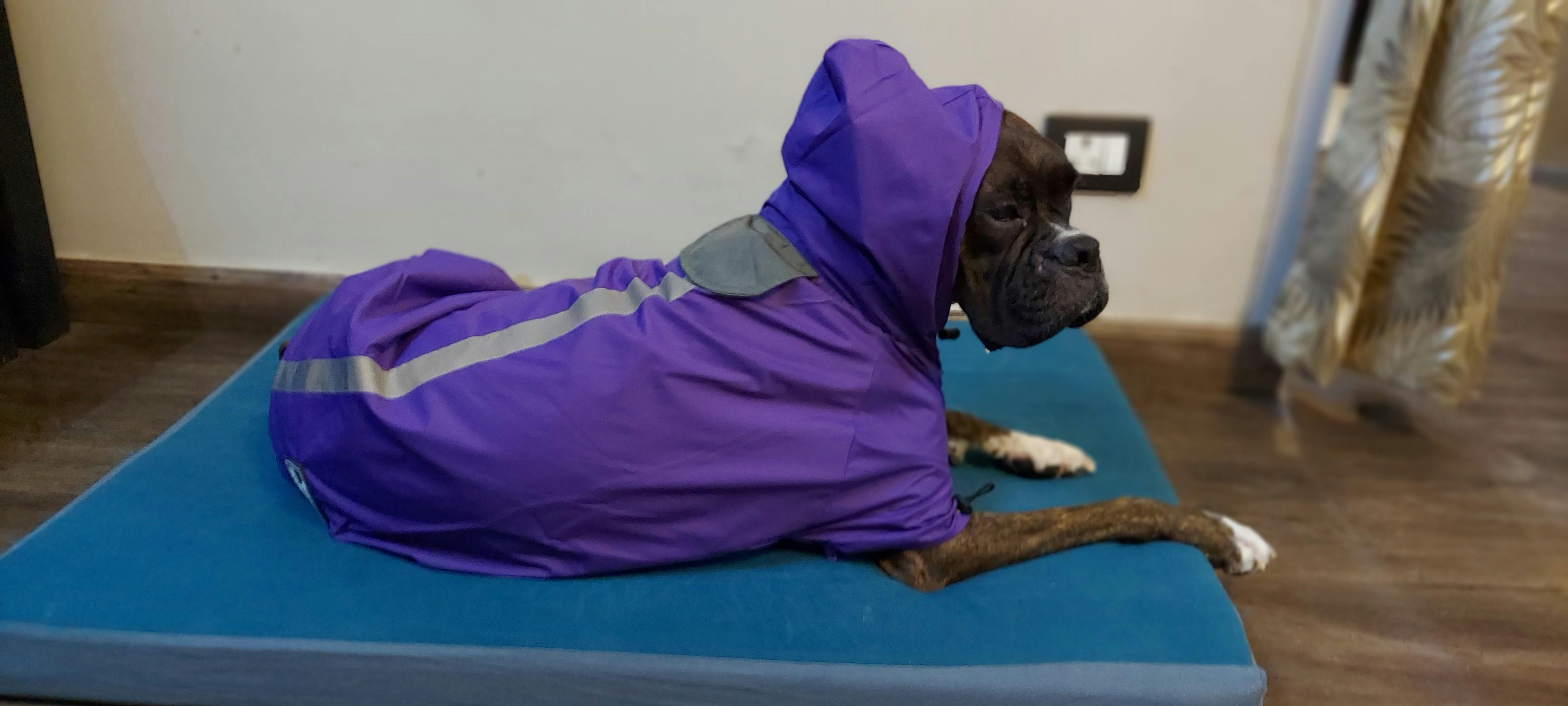When heavy, dark clouds gather we automatically reach for our umbrellas. Now, the HUFT Drizzle Buddy purple raincoat ensures that the furry and four-legged member of your family is also protected. It has been designed just for dogs and provides maximum coverage without hindering your pets movement. Made with light fabric, it is comfortable to wear. The elastic drawstrings help it stay snug and in place. The hood will keep those soft ears dry! Slip it on before your walk on a cloudy day and should you get caught in an unexpected shower, your pets coat will stay dry!