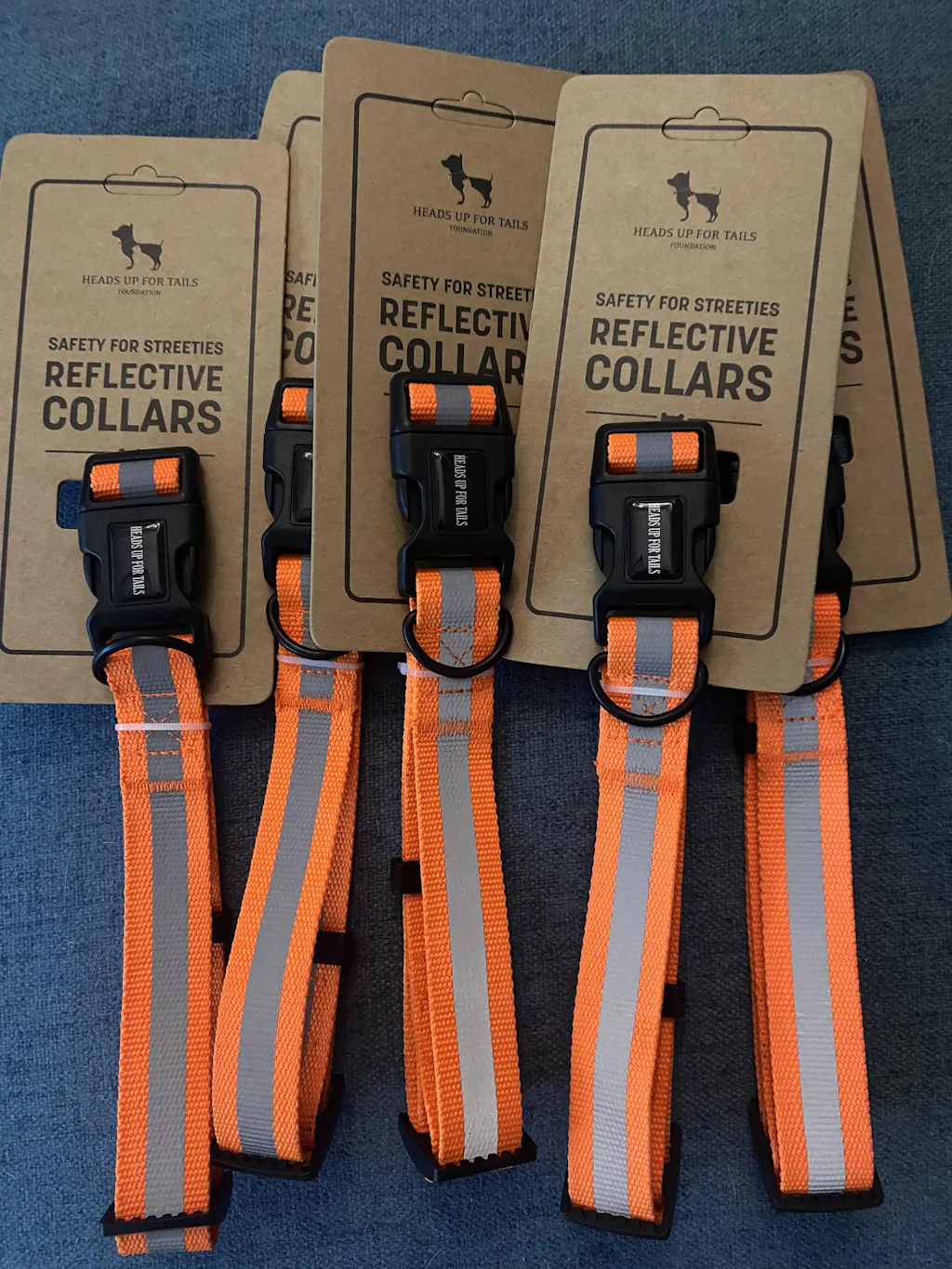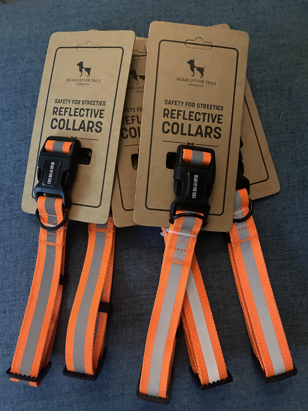 Many riders involved in accident cases claim that they saw the dog too late. Reflective tape on these collars reflects light from a distance signalling the driver of the presence of a dog on the road. Put these on to the street dogs you know to make their lives safer.