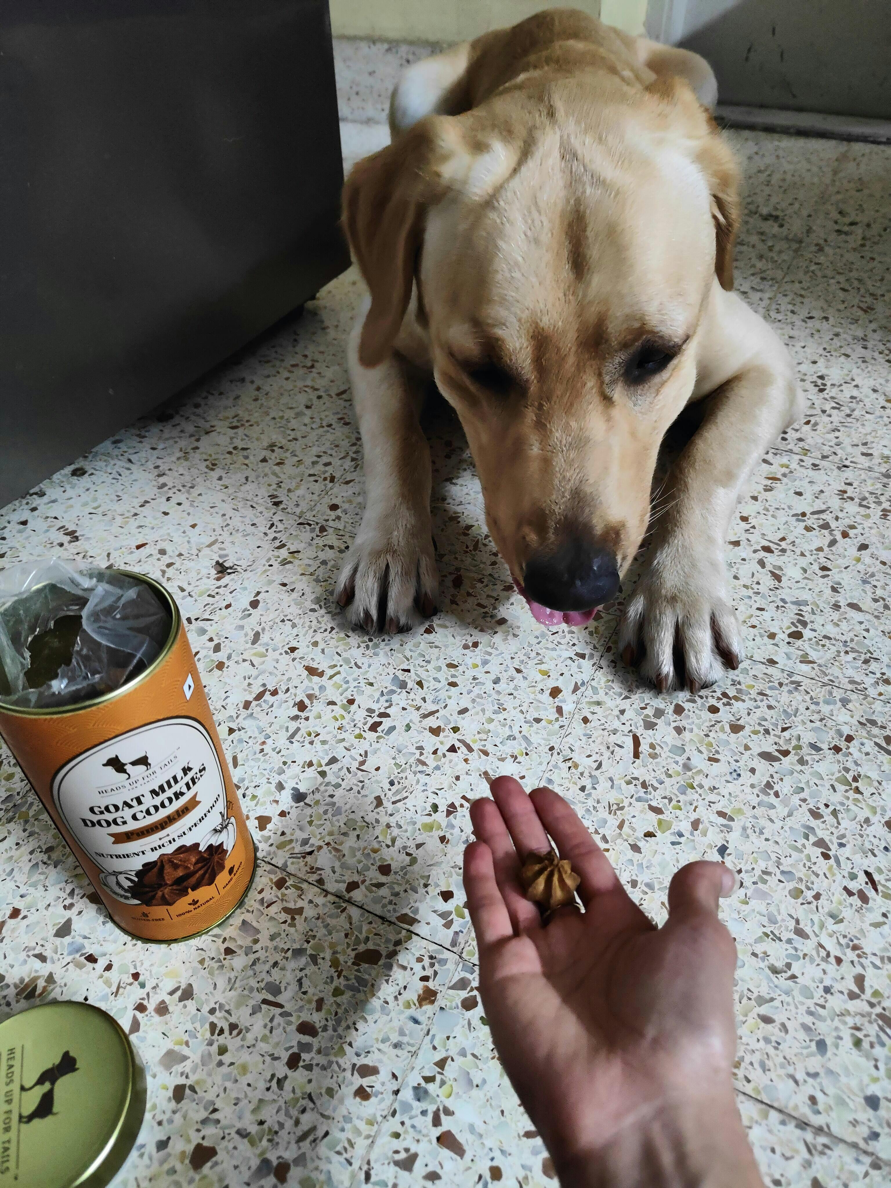 I got goat milk cookies for my Labrador just to try them out. He loved them so much that I went through the tin pretty quick and went back to HUFT for another. Good quality, no nasties.