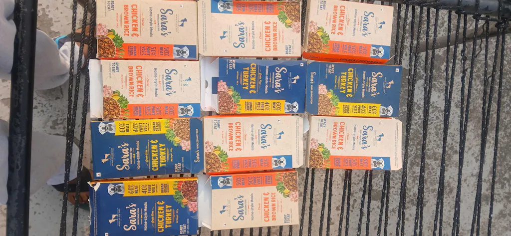 Formulated by canine nutritionists, Sara's Wholesome Food is an all-natural, ready-to-eat meal made using fresh, human-grade ingredients. Our brand-new (Chicken & Mutton) Biryani variant is made of purposeful ingredients like lamb, lamb organ meat, beans, carrot, pumpkin, potato, curd, ghee and more. It also has all the doggy-friendly aromatic spices for that PERFECT biryani that hits the spot: haldi (turmeric), daal-chini (cinnamon), elaichi (cardamom), saumph (fennel seed), kaali mirch (black pepper), moringa, amla, giloy, ashwagandha and more. Cherry on top? All of these ingredients are cooked with premium basmati rice!