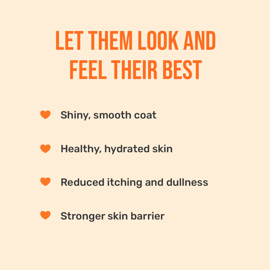 Designed with not just skin-loving, but also gut-loving, 100% natural ingredients, this bundle includes the right amount of protein, omega-3 and 6 fatty acids, essential vitamins, fibre, and more, to help your dog look and feel their best!