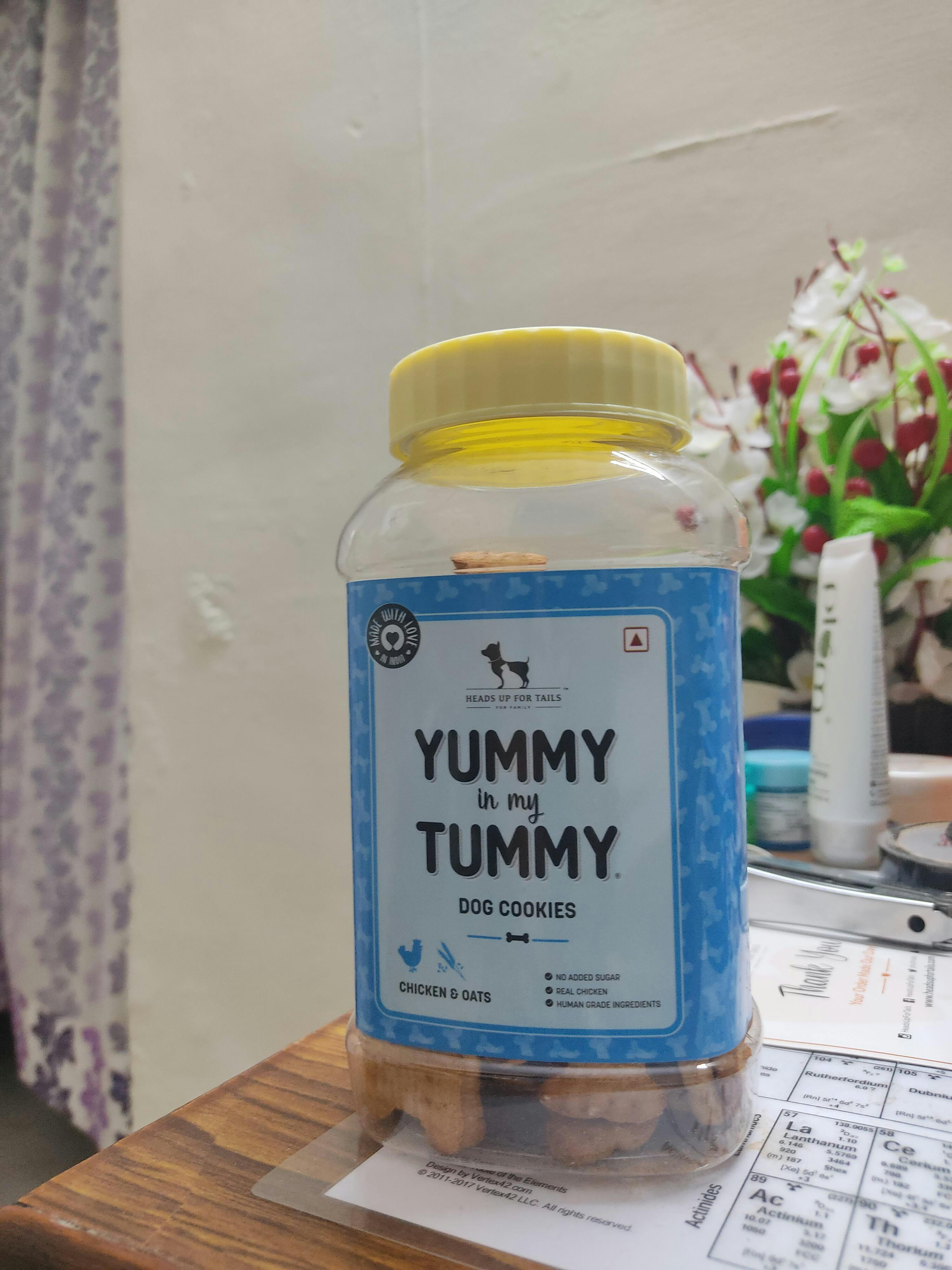 Your search ends here! Health meets taste in HUFT Yummy In My Tummy dog biscuits. Unlike other dog biscuits, ours contain no artificial flavouring or colours, harmful maida (refined flour) or processed sugar. These biscuits are made with only 100% real, human-grade ingredients like fresh chicken, slow-dried chicken liver powder, oats, atta (whole wheat flour) and rice flour, along with lots of love and care!