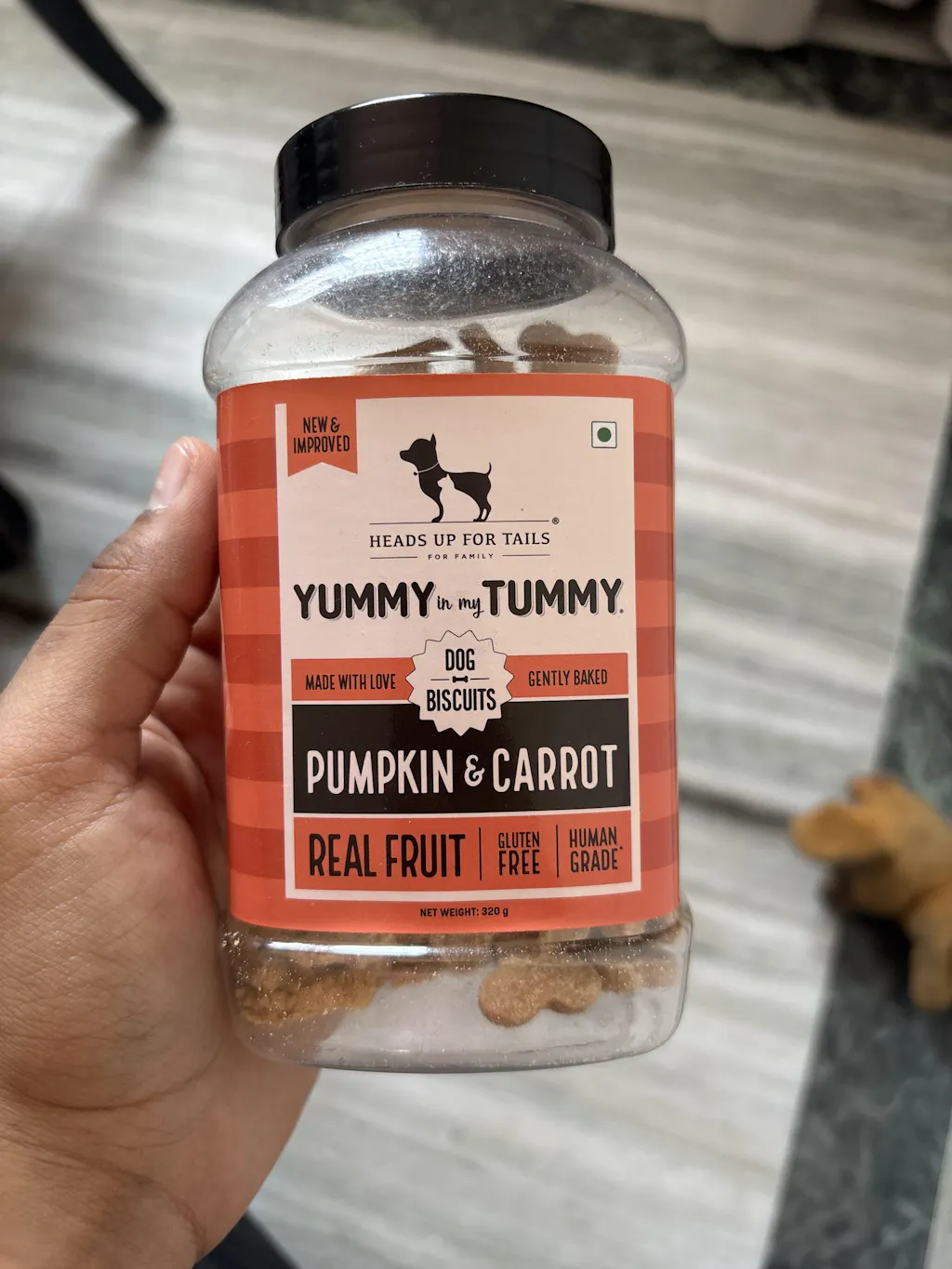 - HUFT Yummy In My Tummy Pumpkin & Carrot Gluten-Free Dog Biscuits: Health and taste come together in HUFT’s Yummy In My Tummy Pumpkin & Carrot Gluten-Free Dog Biscuits. Carefully crafted using only 100% real, human-grade ingredients like pumpkin, carrot, jaggery, oat flour, and rice flour, these vegetarian biscuits contain no artificial flavouring, colours, maida (refined flour), or processed sugar. They are completely gluten-free, making them an ideal choice for dogs with wheat or gluten allergies, supporting easier digestion and helping avoid allergic reactions