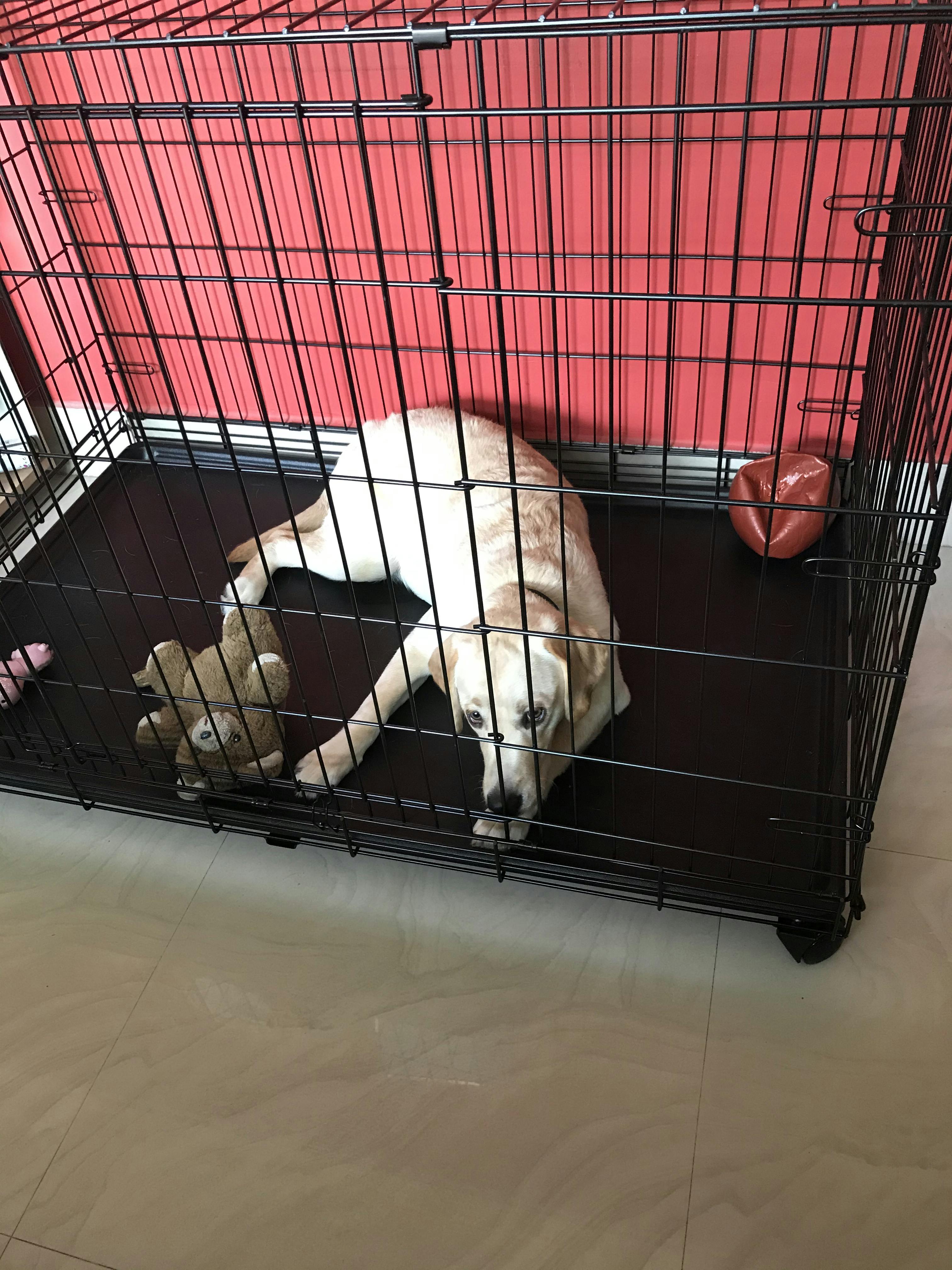 We bought this crate for our 8 week golden retriever pup (bought the Large size so it is good for the next 12 months). The quality of the crate is excellent, the door locking mechanism works well and the wheels (which all have locks) are a life saver as it allows us to shift the crate (especially useful when you have to mop the floor). The crate folds into a compact rectangular unit for storage.