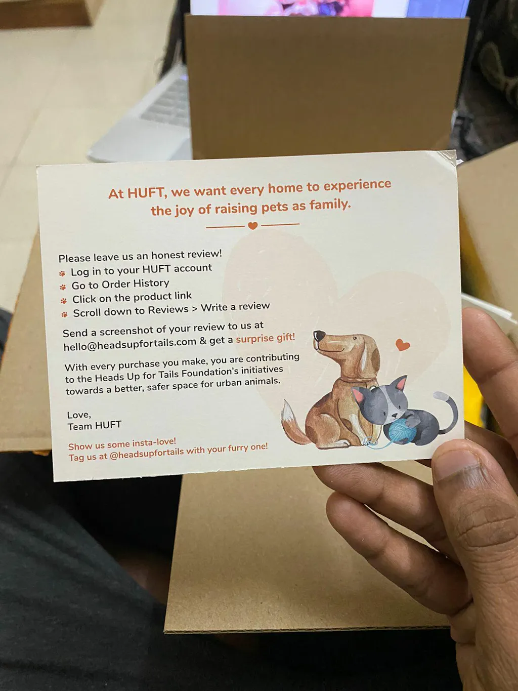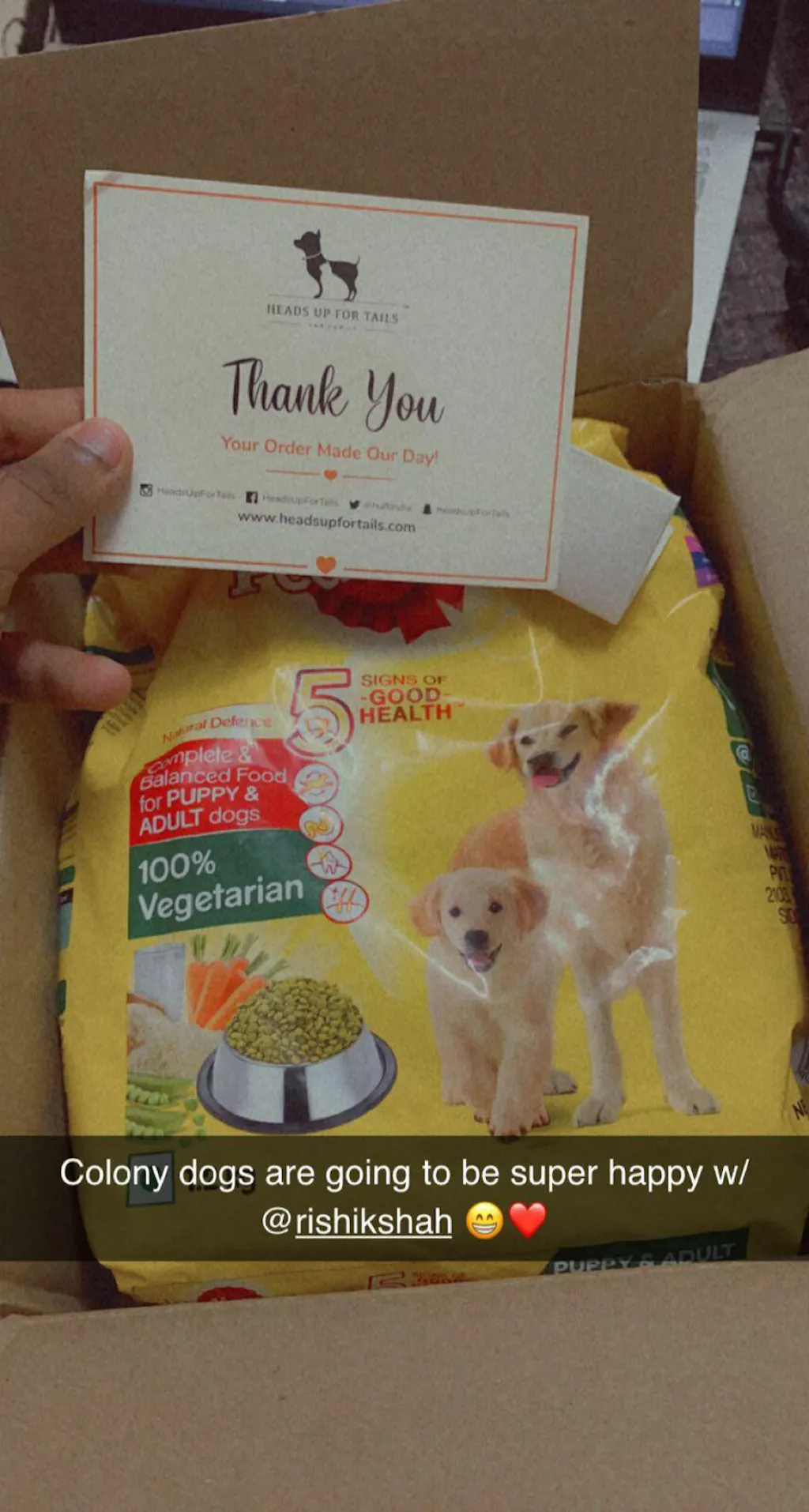 One of my friends had recommended your site & immediately I ordered this product & the experience was lovely & the package that has been delivered is very neat with a very humble message, can't wait to feed the pets & make their tummy's full, thank you headsupfortails!