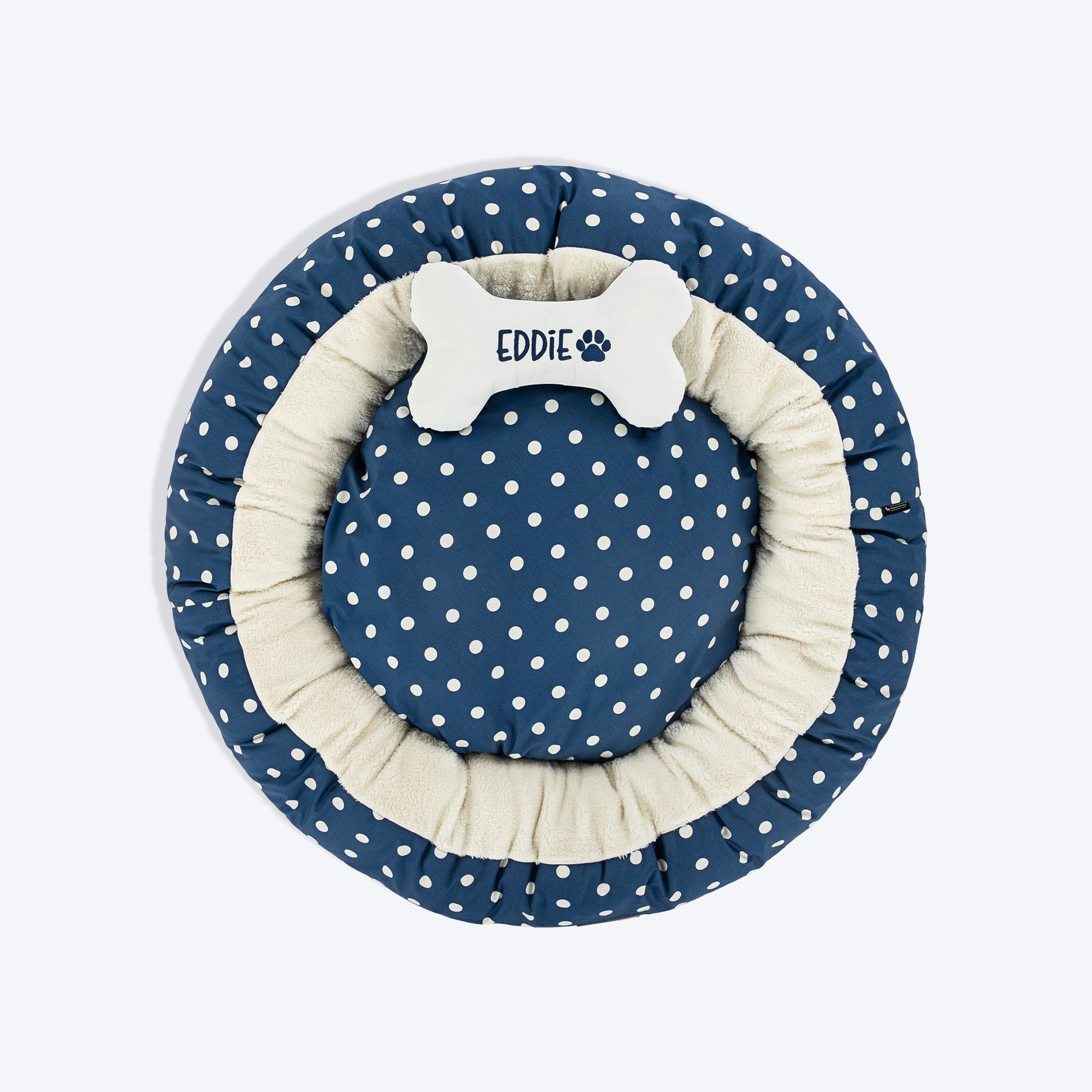 - Product Name: HUFT Personalised Polka Paws Fur Donut Bed For Dog & Cat - Navy