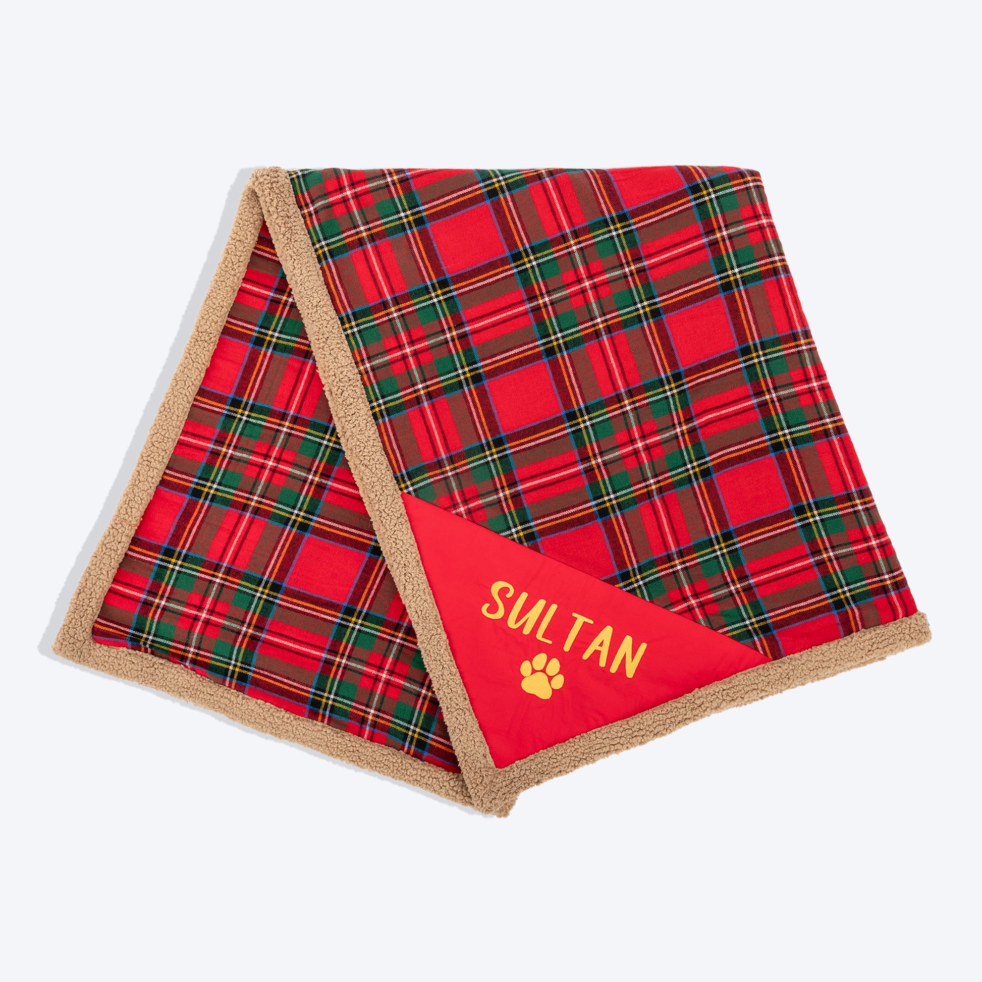 HUFT Personalised Tartan Snuggle Blanket For Dog & Cat - Red & Green