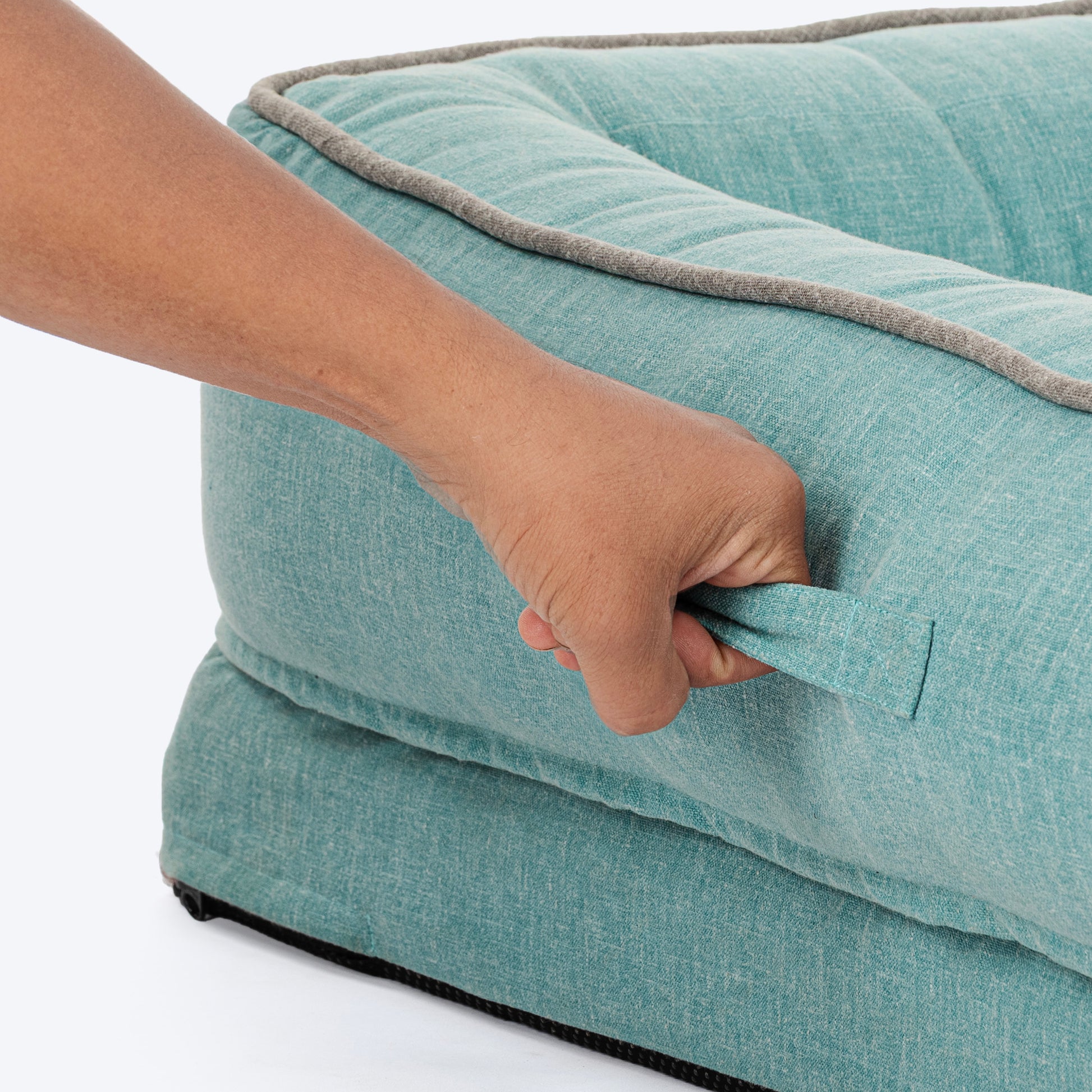 Treat your furry companion to the comfort they truly deserve with the Warm Hug Orthopaedic Sofa Bed. Expertly crafted with firm cushioning, it helps relieve pressure on joints and bones, making it ideal for senior dogs and large breeds. The supportive bolstered sides create a cosy, protective shape that gives your pet a sense of security, while the calming light blue upholstery adds a touch of elegance to your home.
