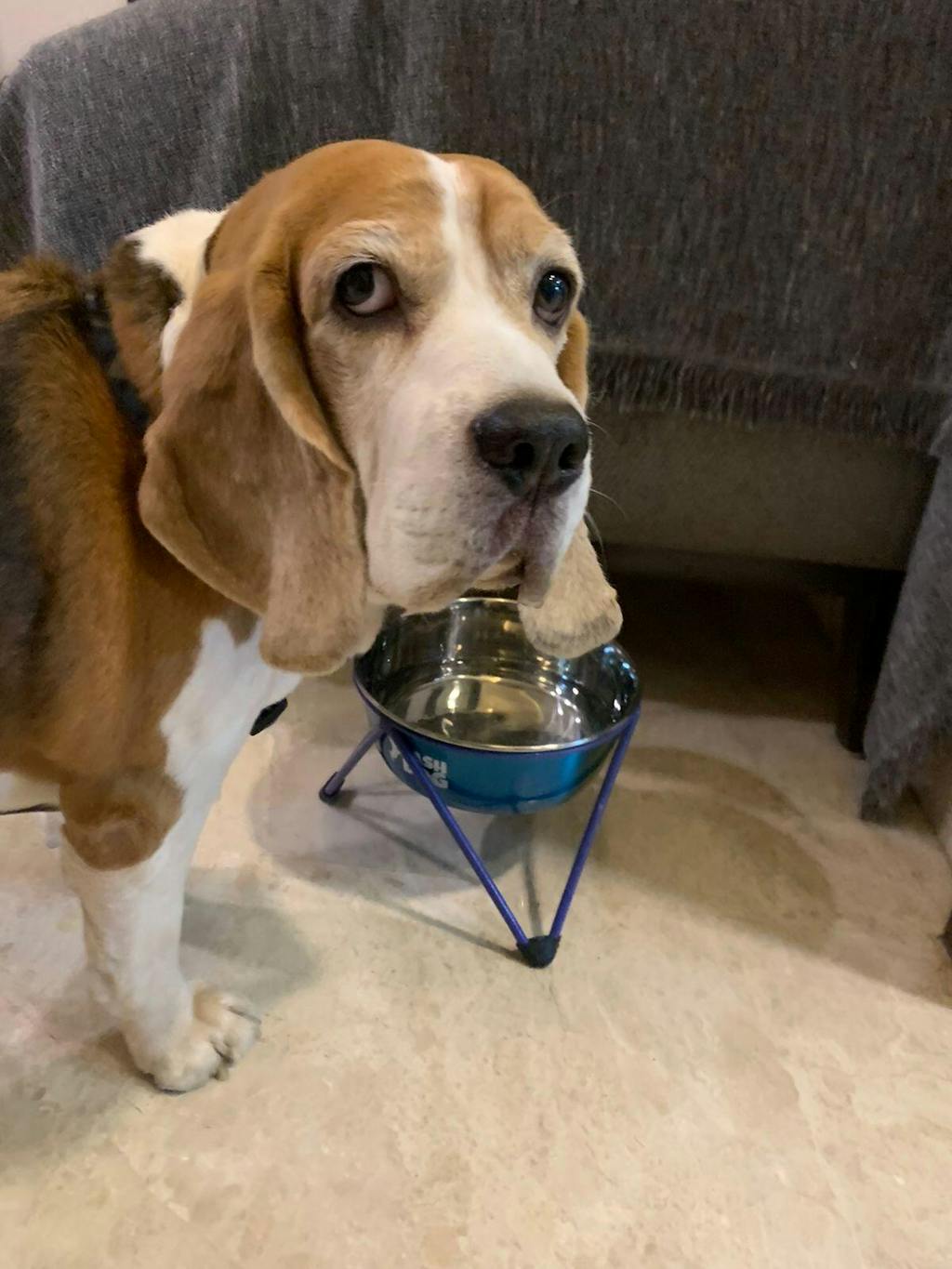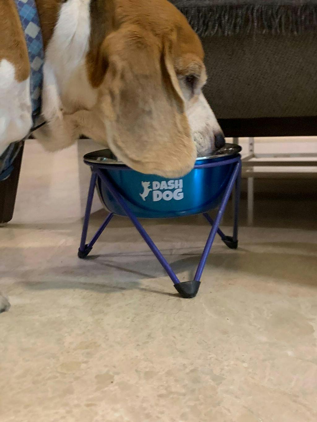 The elevated Dash dog bowl is very well designed. My dog drinks a lot of water at a go . He doesn't have to bend and seems very comfortable drinking from it. The bowl with it's rainbow colors looks really cool. It's a great buy.