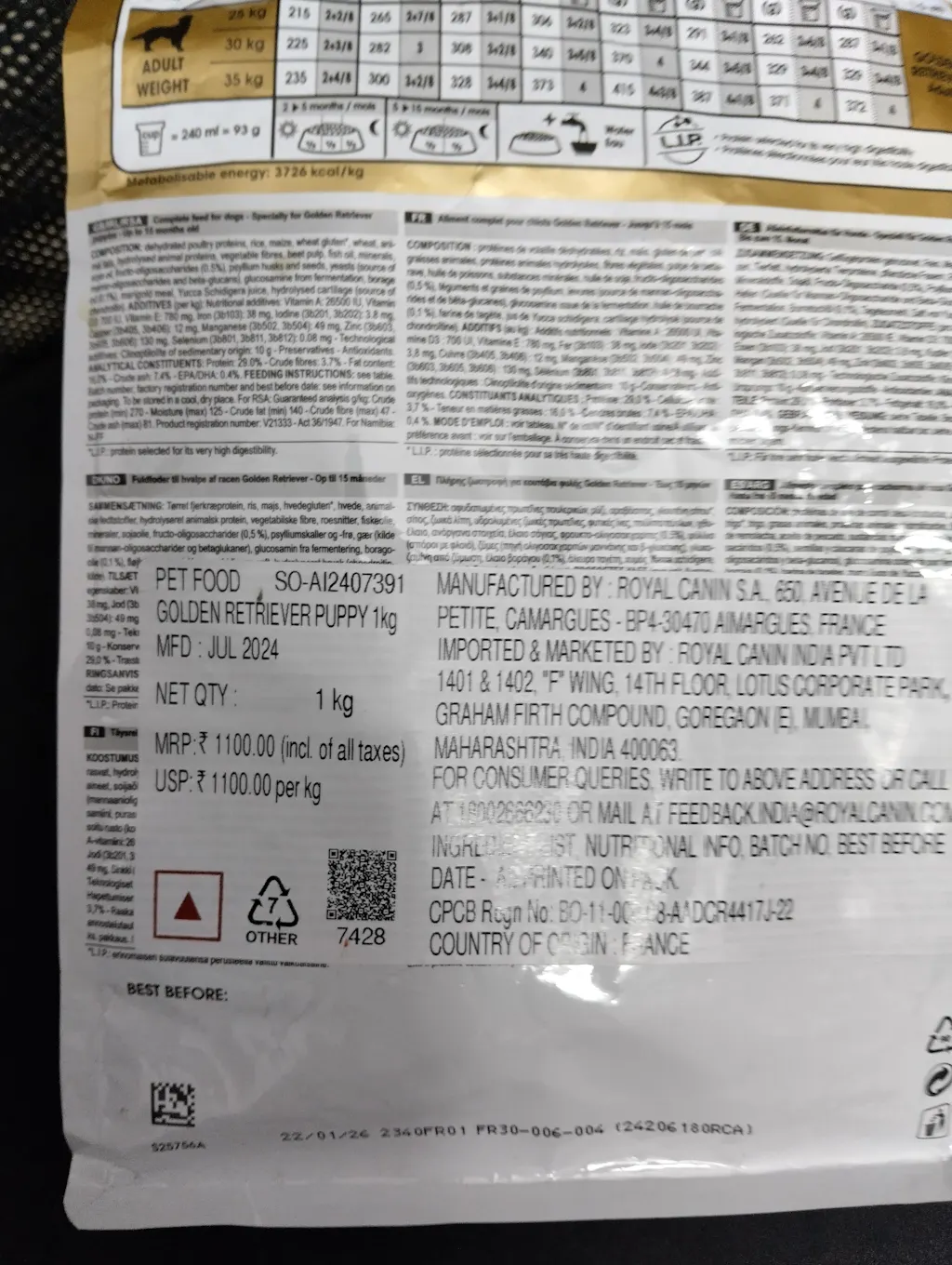• Product Name: Royal Canin Golden Retriever Puppy Dry Dog Food
