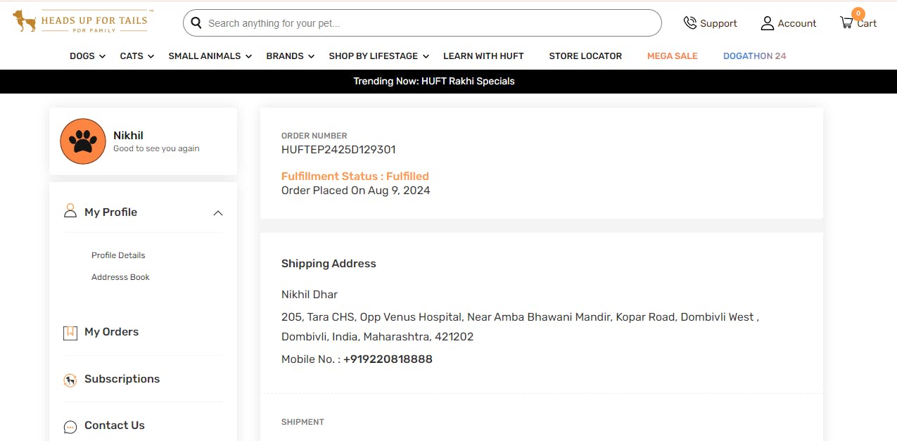 Bought Royal Canin Home Life Indoor 27 Dry Cat Food 2kg packet from HUFT on 20.07.2024 at a discounted price of 1707.00 INR only.