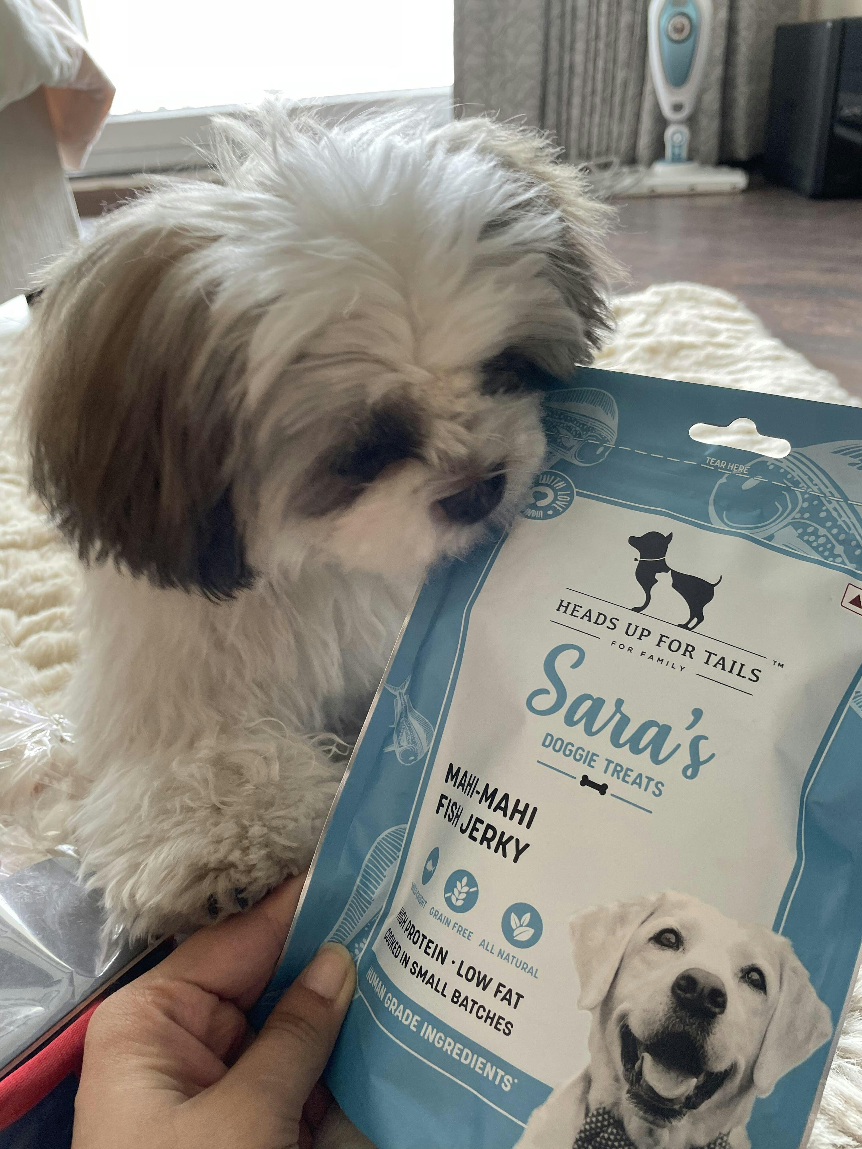 My ShihTzu absolutely loves Sara's Doggie treats. Since she is a small dog breed, she takes her own sweet time to chew it. I love the fact that the treat is just dehydrated fish with no filler ingredients.