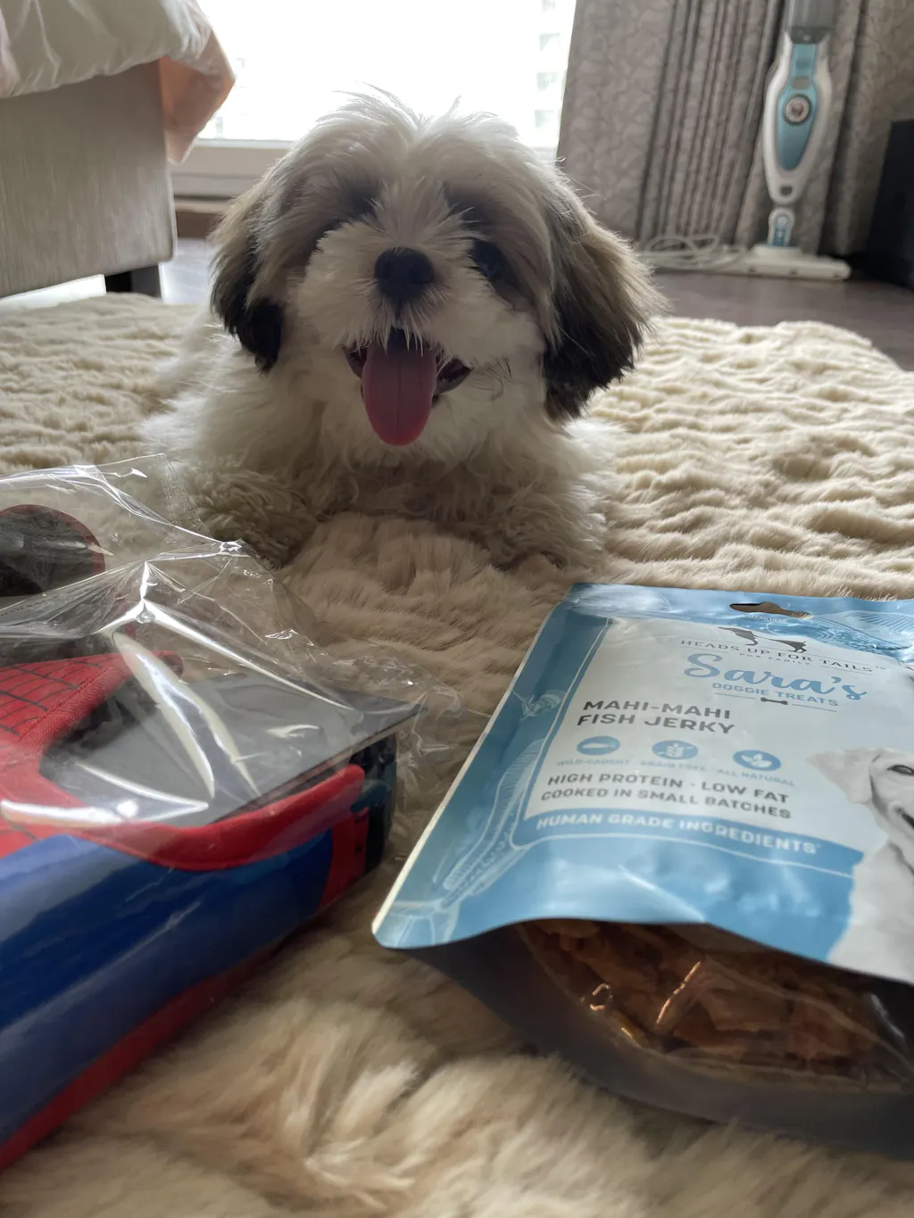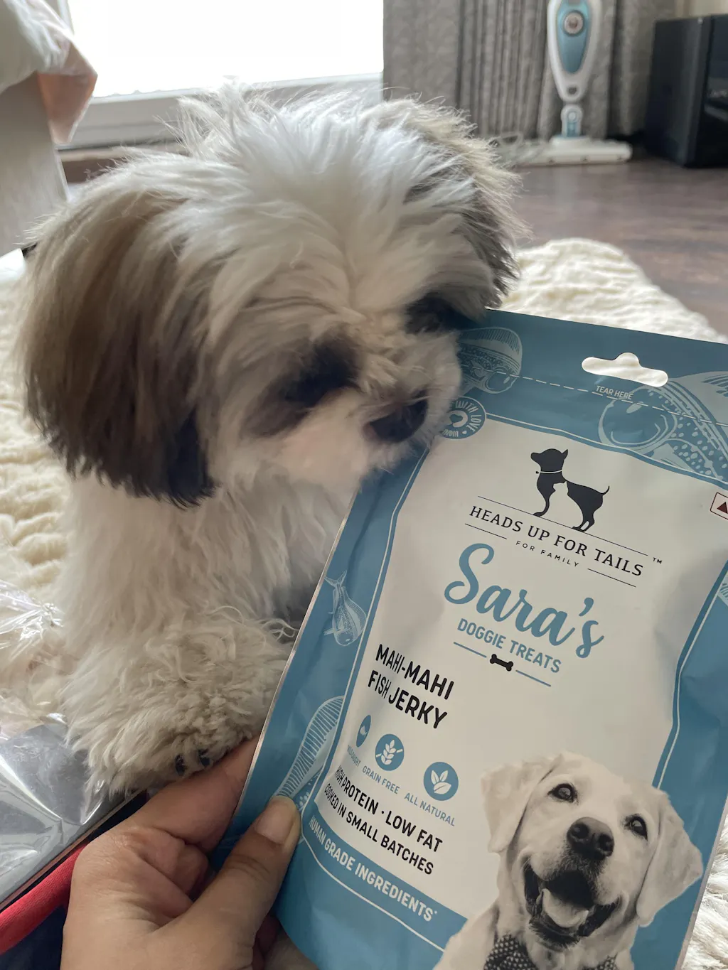 My ShihTzu absolutely loves Sara's Doggie treats. Since she is a small dog breed, she takes her own sweet time to chew it. I love the fact that the treat is just dehydrated fish with no filler ingredients.