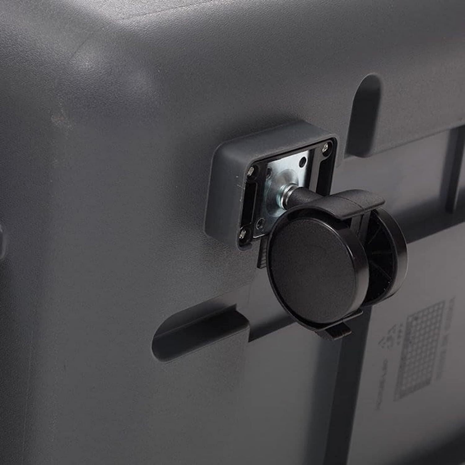 - 2 wheels with brake at the front of the bottom part and the 2 wheels without brake at the back of the bottom part.