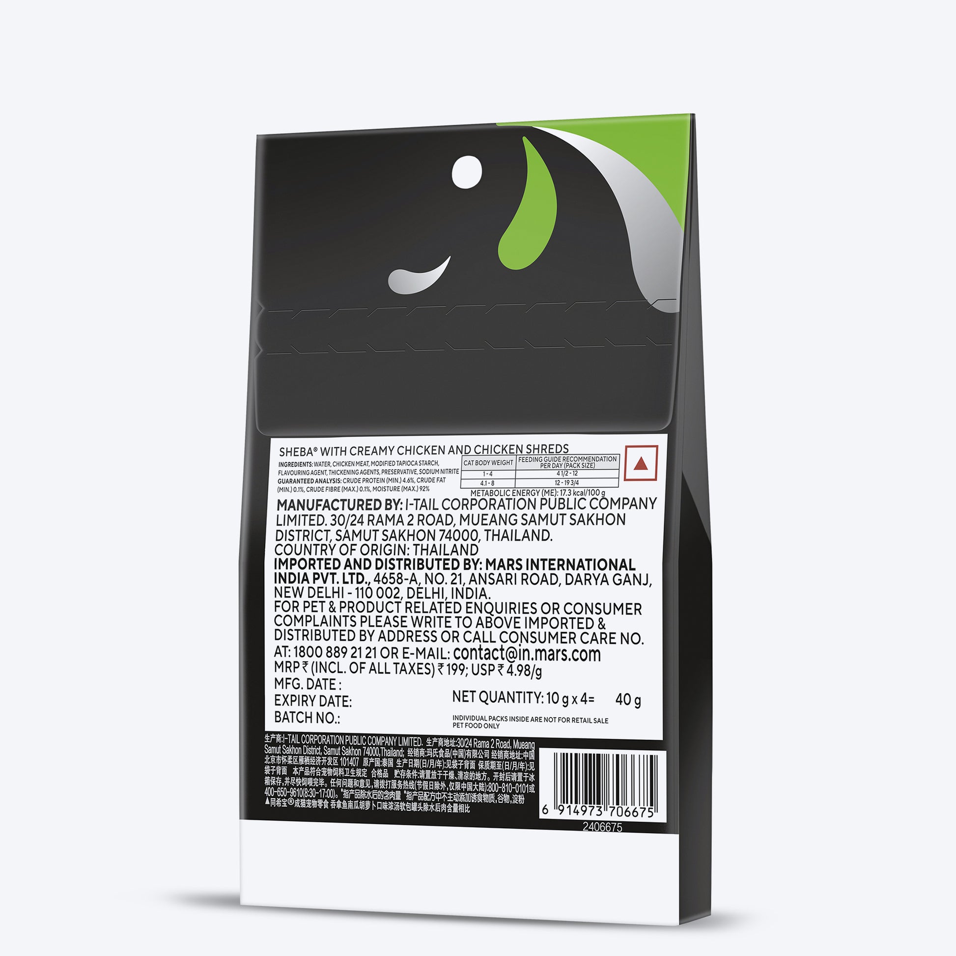 - Product Name: Sheba Melty Spoons Creamy Chicken & Chicken Shreds Treat For Cat - 40 gm Packs