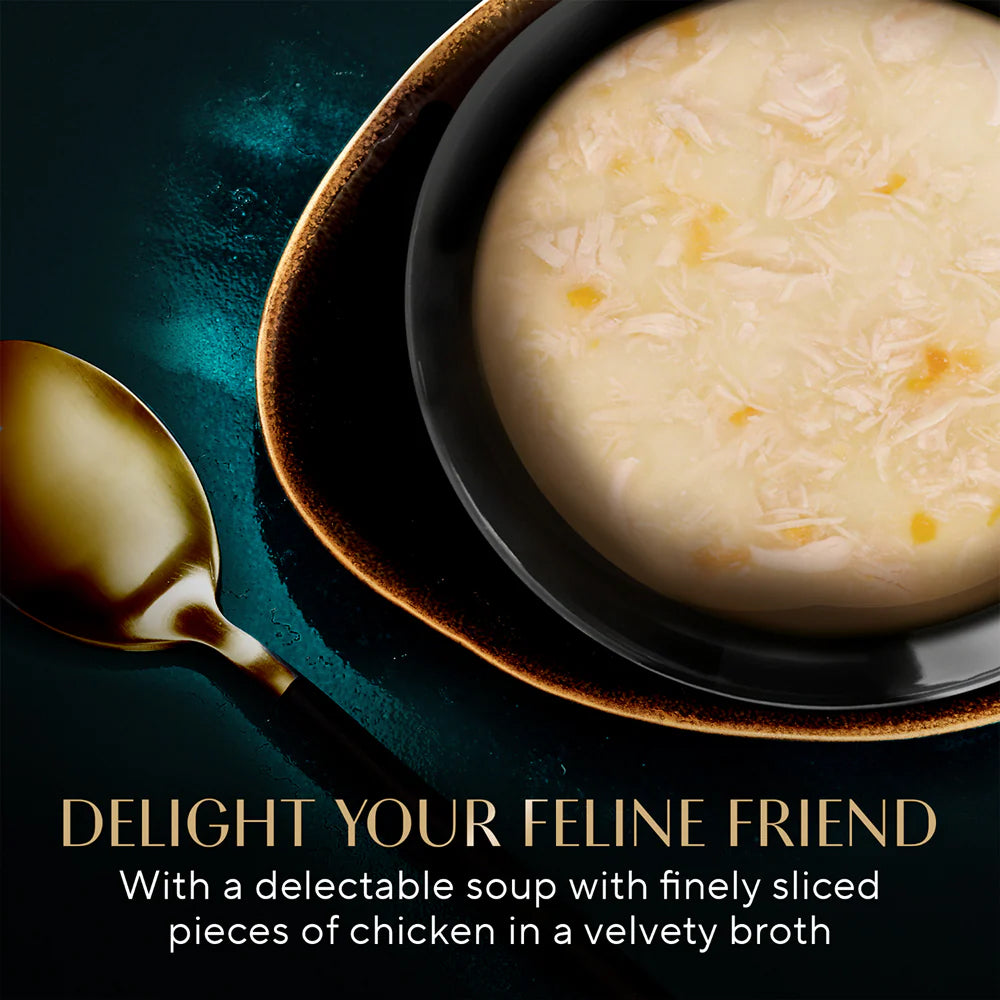 Expertly Prepared Recipe: Each soup is delicately crafted by experts to provide a fine dining experience at home - featuring a silky broth and tender, finely sliced chicken to please even the most refined feline palate.