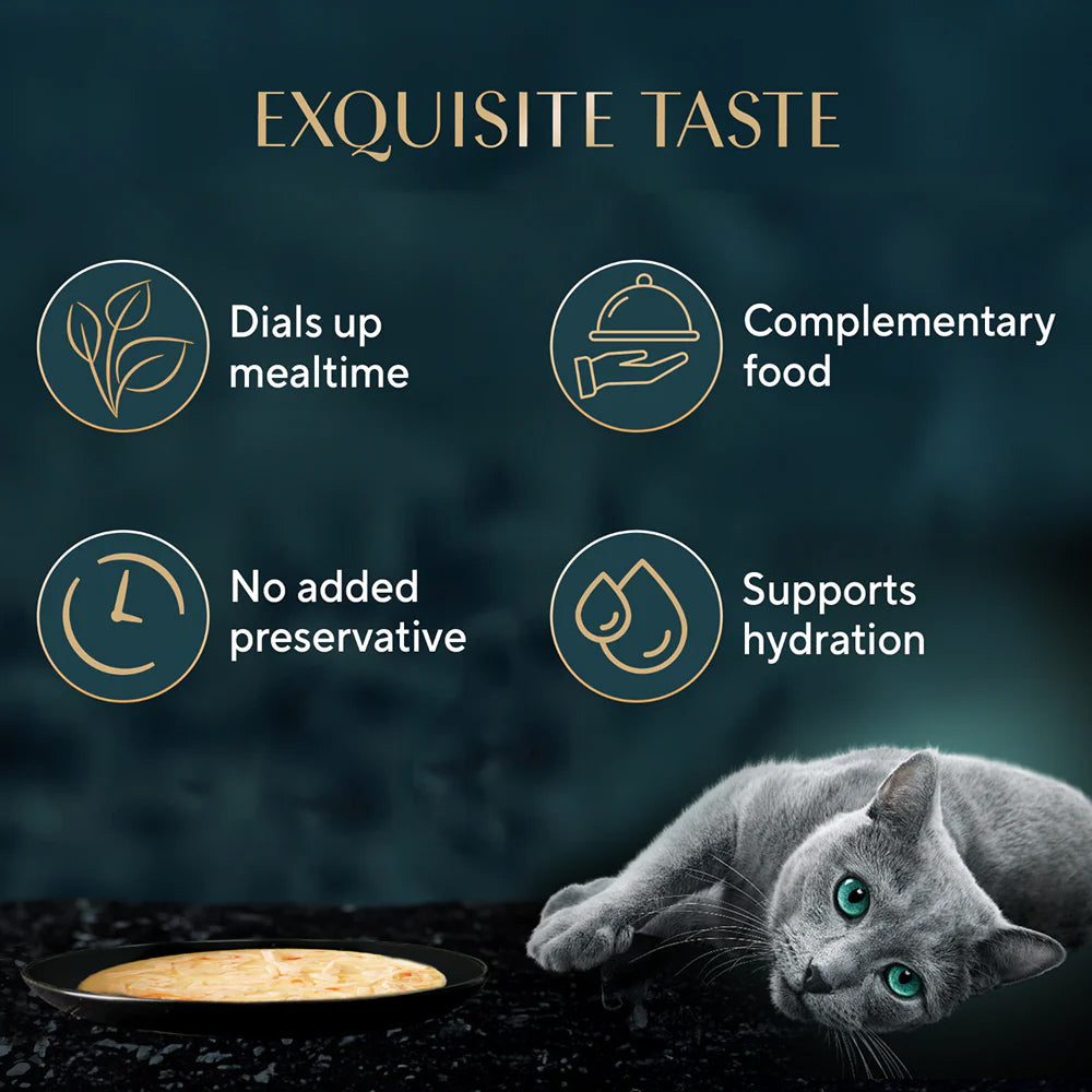 Masterful Texture Combination: The smooth, velvety broth and delicate chicken pieces are masterfully blended to create a luxurious texture combination that delights your cat's senses with every slurp.
