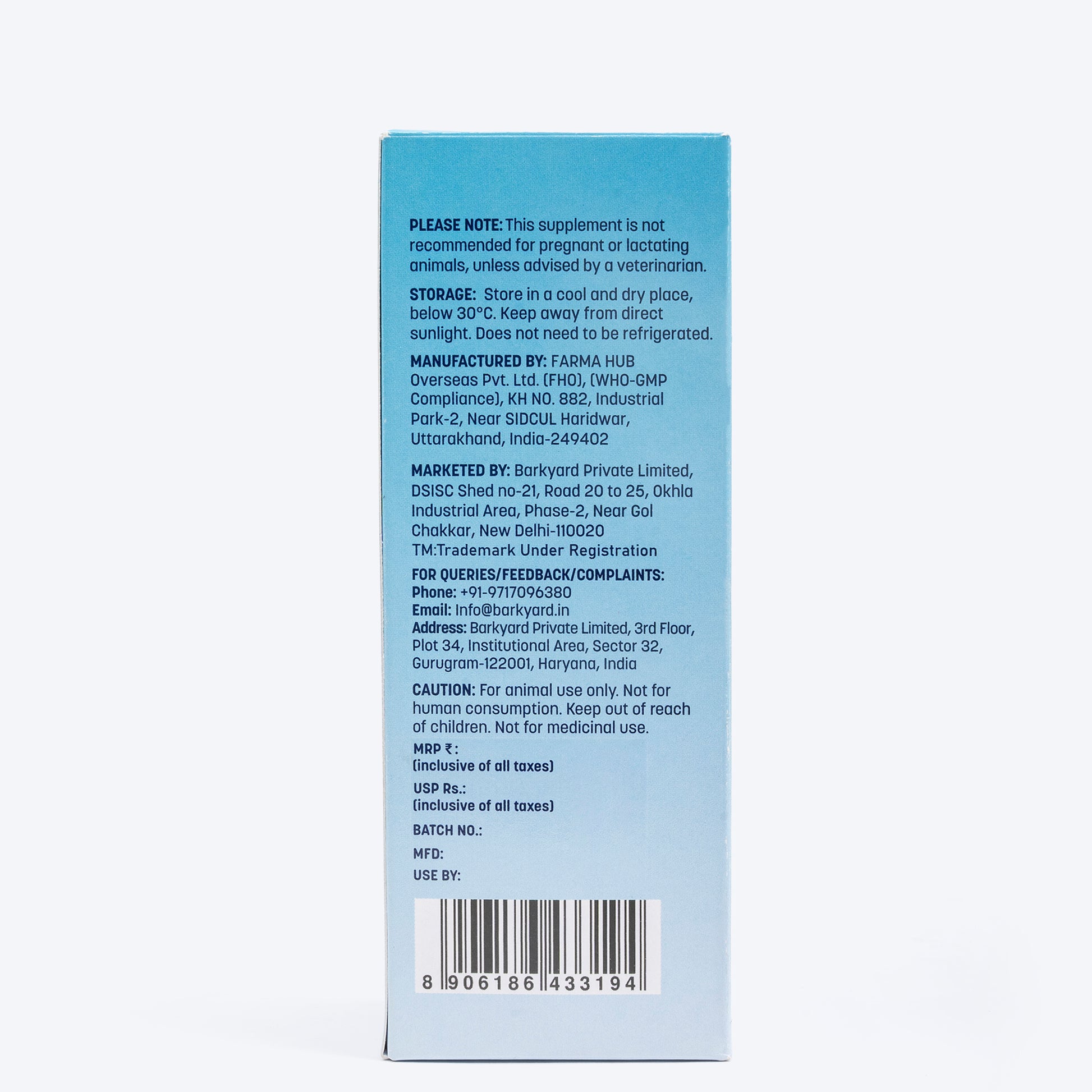 - Marketed By: Barkyard Private Limited, DSISC Shed no-21, Road 20 to 25, Okhla Industrial Area, Phase-2, Near Gol Chakkar, New Delhi-110020, India