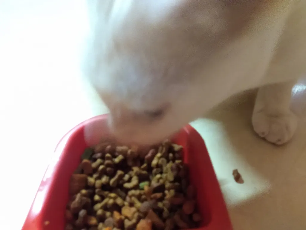 First of all I personally like the products shape and the three color combination. My cat he pretty much loved it in one go. We ran out of supplies by the time the parcel reached and I had to introduce him to the food immediately without the seven days adjustment time period. But he just loved it right away though it was his first time tasting the chicken food. I always had him on salmon and mixed fish based dry food.