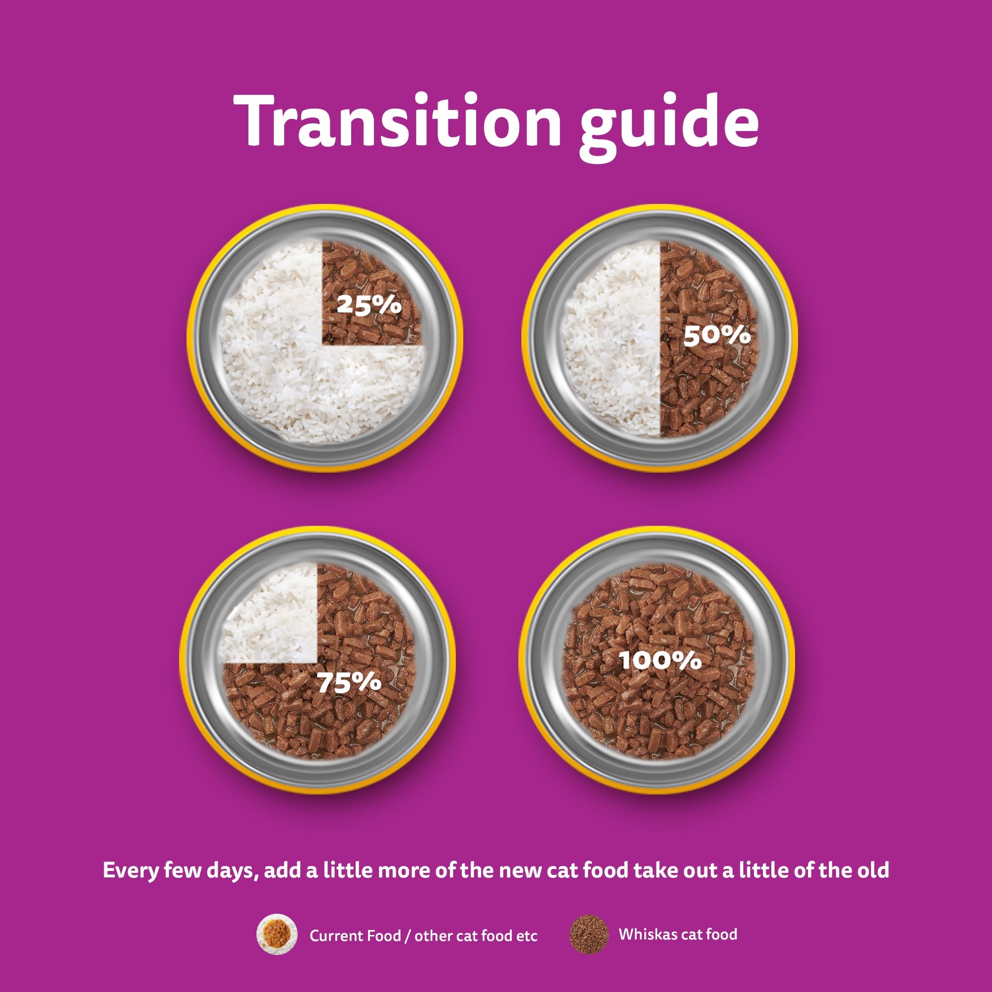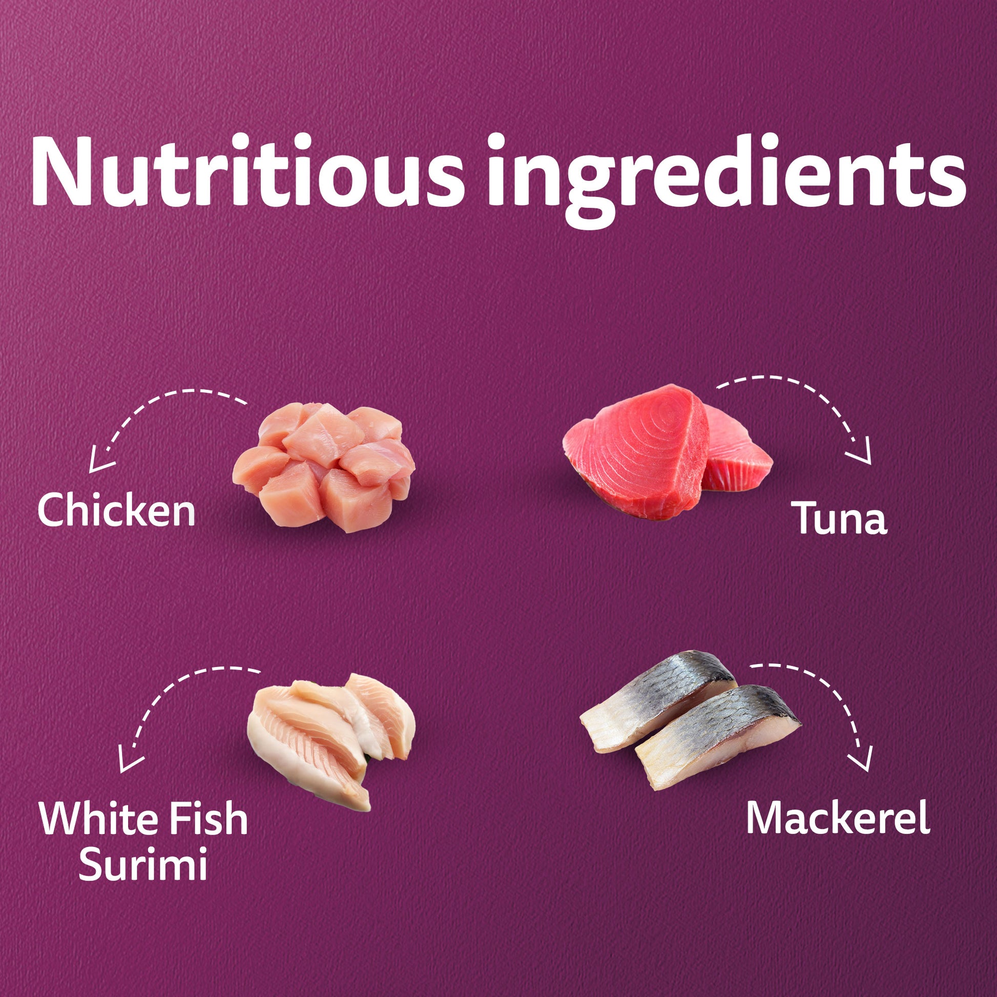 This protein-rich diet will feed your cat's innate love for fish and also provide them with a good amount of moisture and all the right nourishment to help keep their fur, bones, skin, muscles, heart-health and overall immunity in great shape. Whiskas food has been developed with experts at the WALTHAM Centre for Pet Nutrition and contains a unique patented combination of zinc + omega 6 fatty acids that help to maintain the skin and coat.