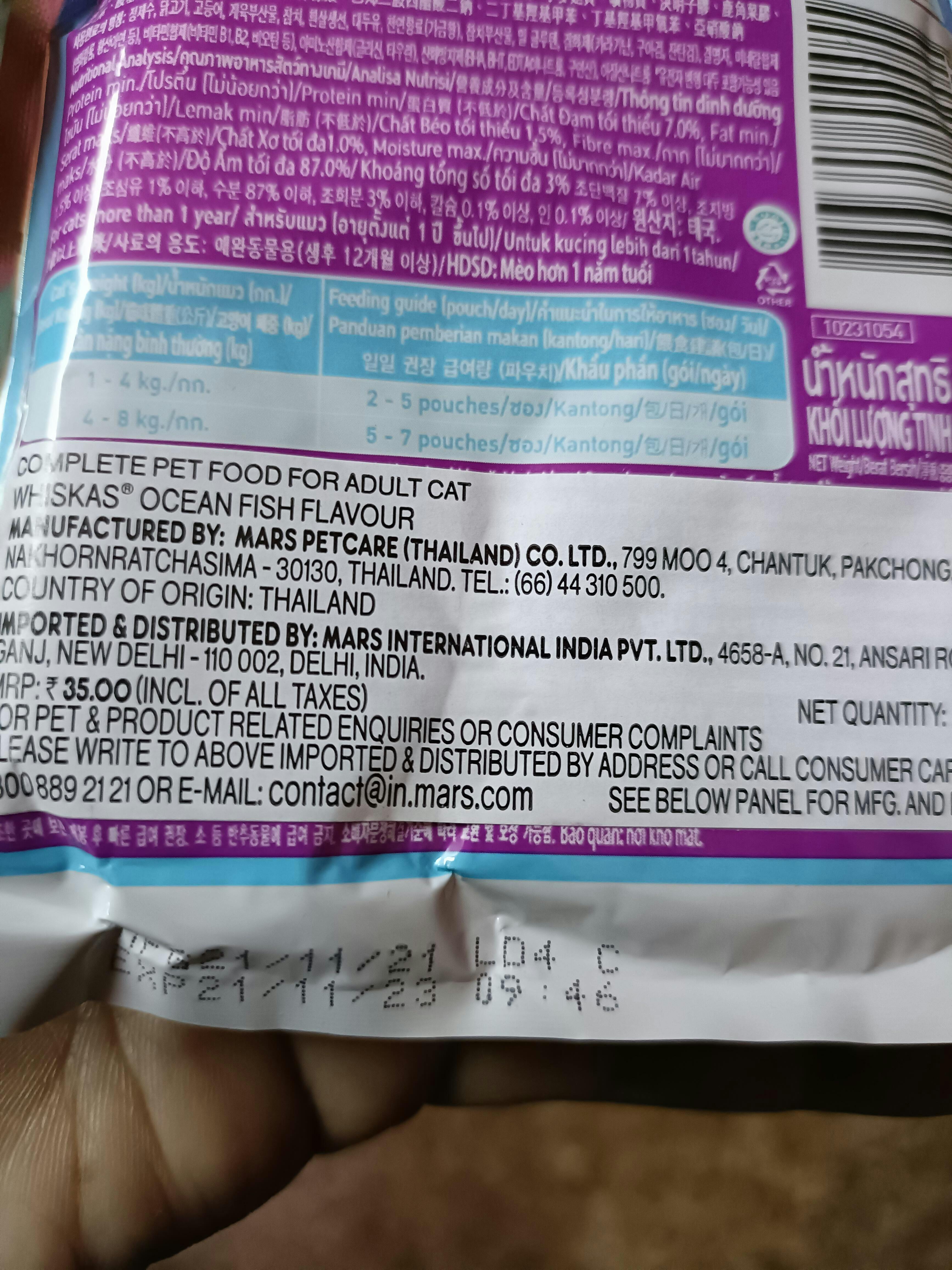 - Product Name: Whiskas Ocean Fish Wet Food For Adult Cat - 80 gm Pack